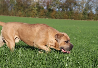 C'est une chienne affectueuse, sage, très intelligente, stable dans son comportement, tolérante avec ses congénères. Ses premiers chiots, dont le père est ROBB, ont développé toutes ces caractéristiques et font le bonheur de leurs nouveaux propriétaires.