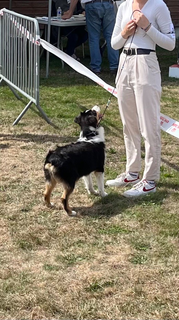 DCC, Petit modèle élégant, NT, ossature légère et ronde, bonnes proportions de corps, poitrine correcte pour le gabarit et l'âge, épaule moyenne, angulations arrières correctes, jarret un peu long, encolure dégagée, tête féminine, bonnes proportionsExcellent crâne, stop et museau, excellentes oreilles bien portéesExcellents yeux expressifsSerre à l'arrière, excellent mouvement véloce