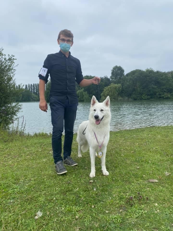 Bon yeux, bon crâne, belles oreilles, bonne pigmentation, angulation avant arrière correcte, poitrine bien descendue, bon implantation de la queue, bonne texture de poils, belle allure, la ligne de dos pourrait être un peu plus tendue à la marche. Bon tempérament.