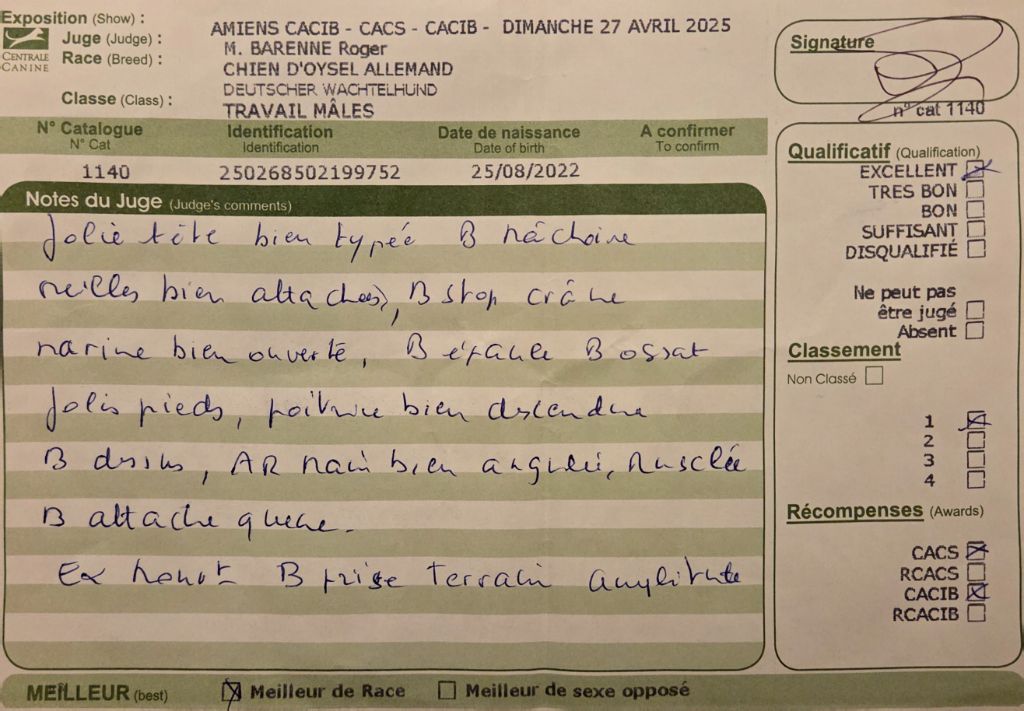 - 1er Excellent - CACIB - Meilleur Champion - Meilleur de Race