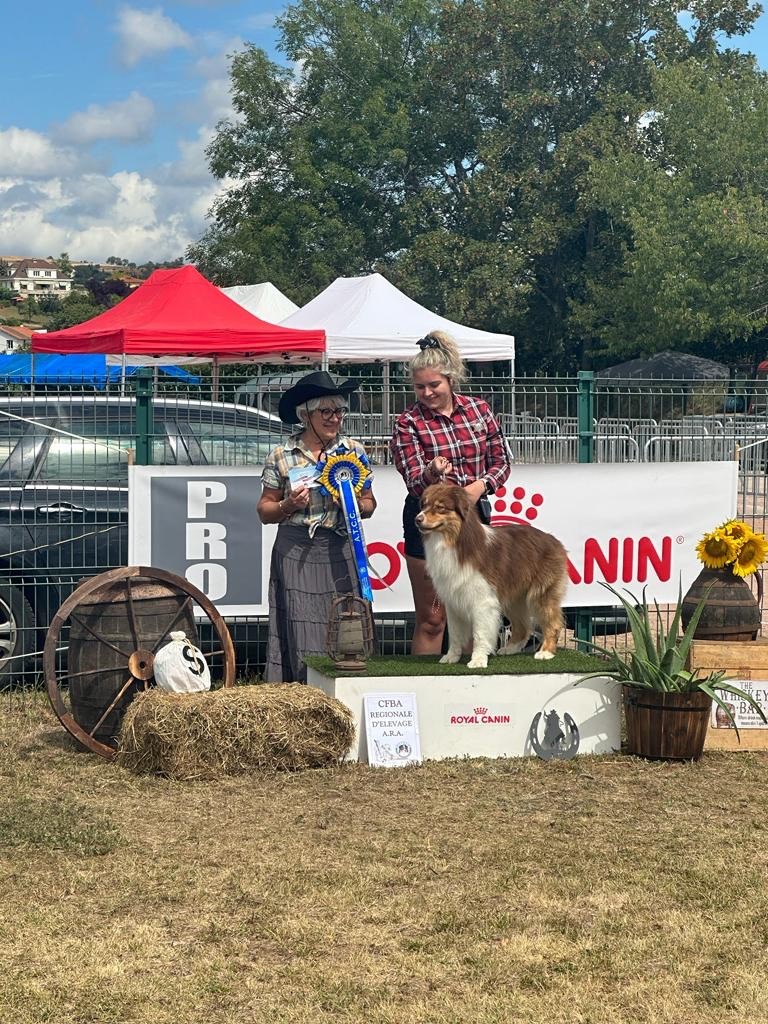 Meilleur de race jeune , Meilleur de race 15 mois, DCC, Tete avec de bonnes proportions et lignes, Tres bon oeil, Bon port d oreille, Bonne proportion de corps, Poitrine correcte dans ses 3 diamantions, La ligne de dos est soutenue, Bonne ossature, Bon pieds, Bonne amplitude