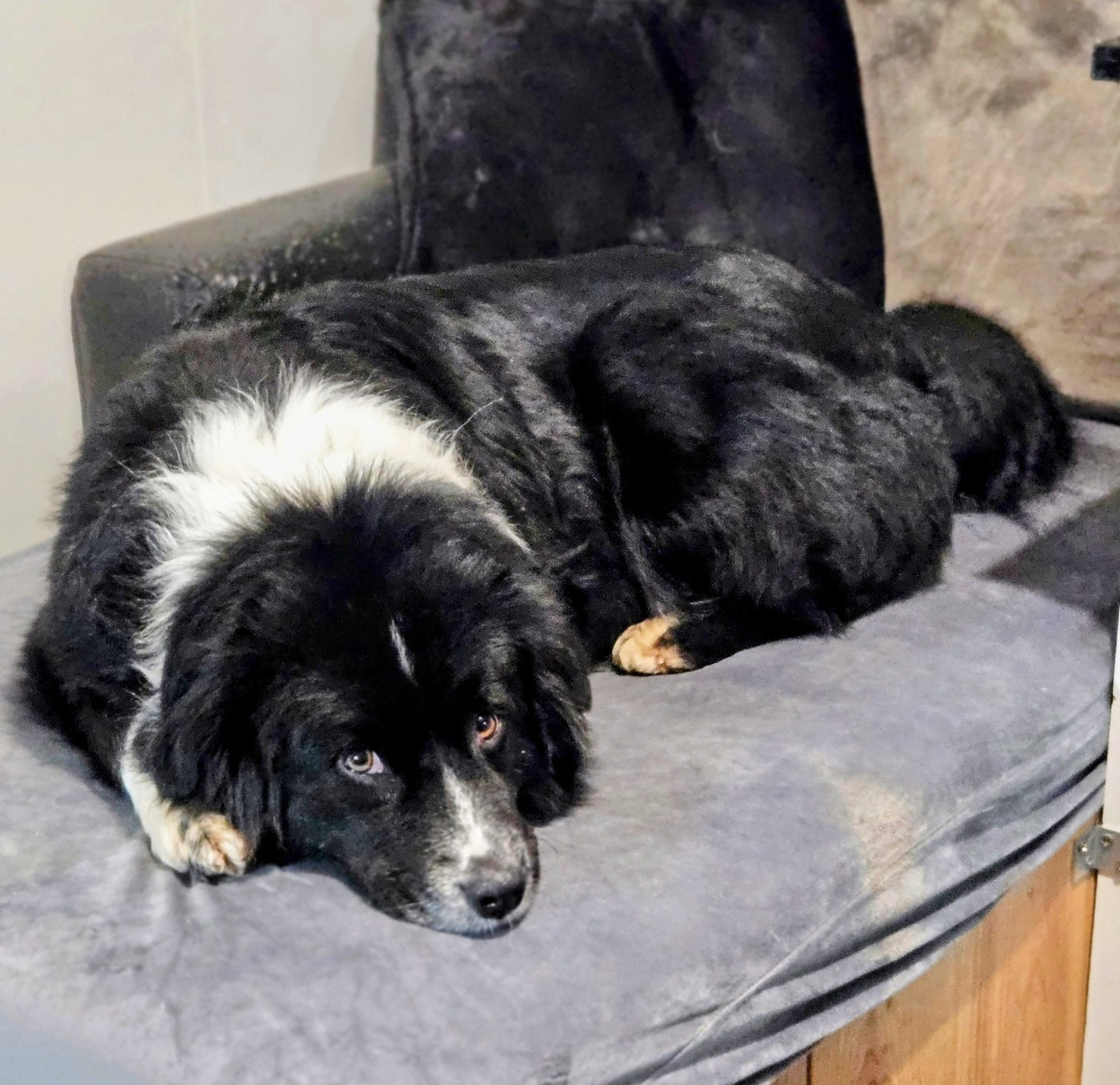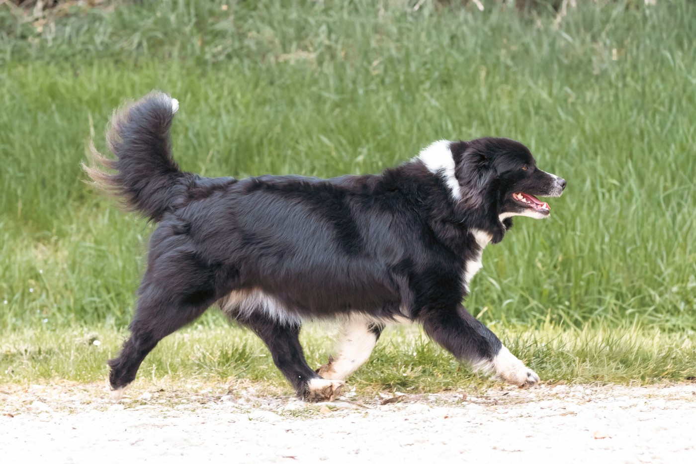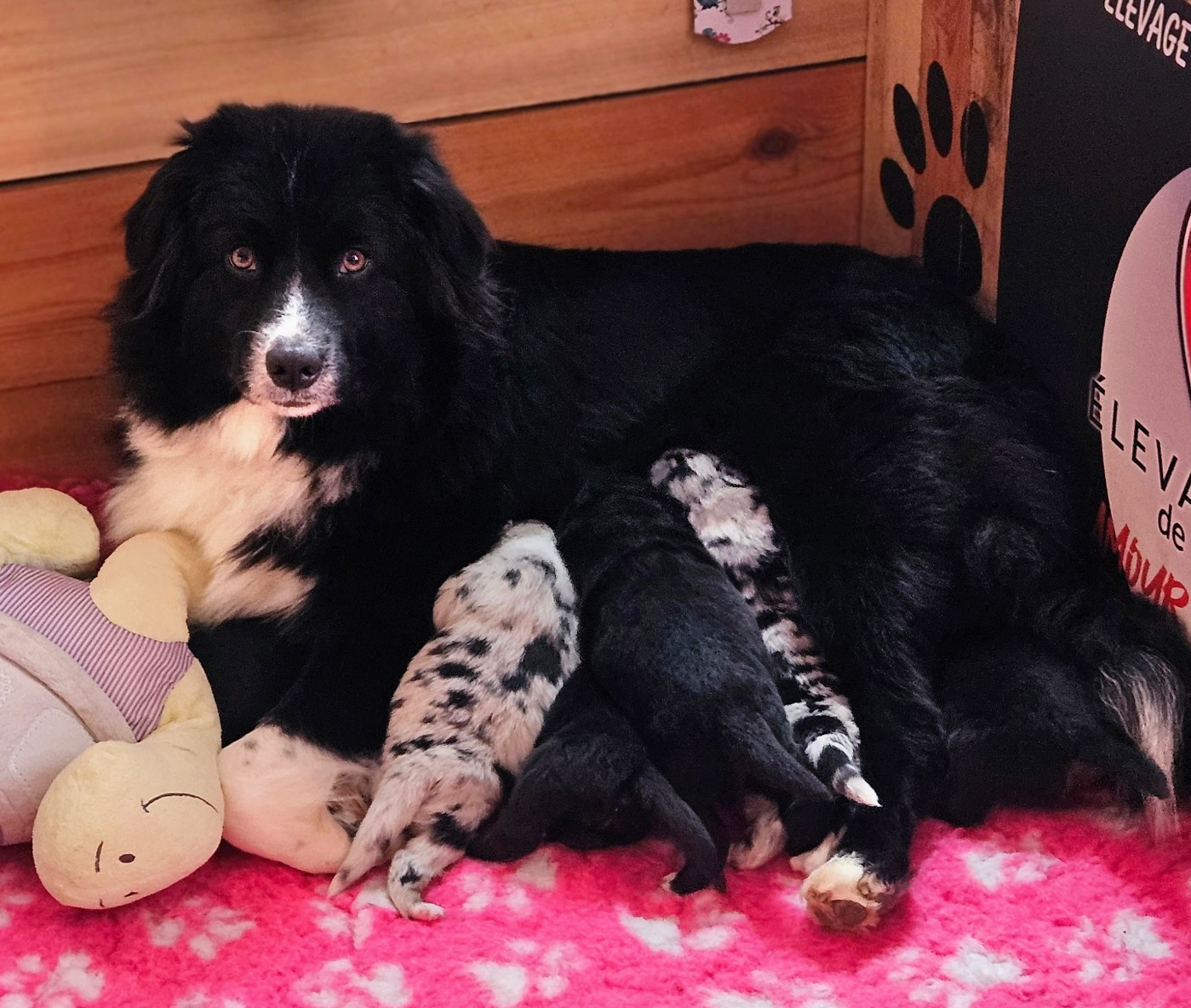 Bella est vraiment une perle rare avec une morphologie à tomber par terre !! C’est une chienne de petit gabarit, elle mesure 46cm pour 19kg. Elle est compacte, bien carré avec un pelache long et bien fournie en sous poils. Elle nous offre des bébés d’une grande qualité.
