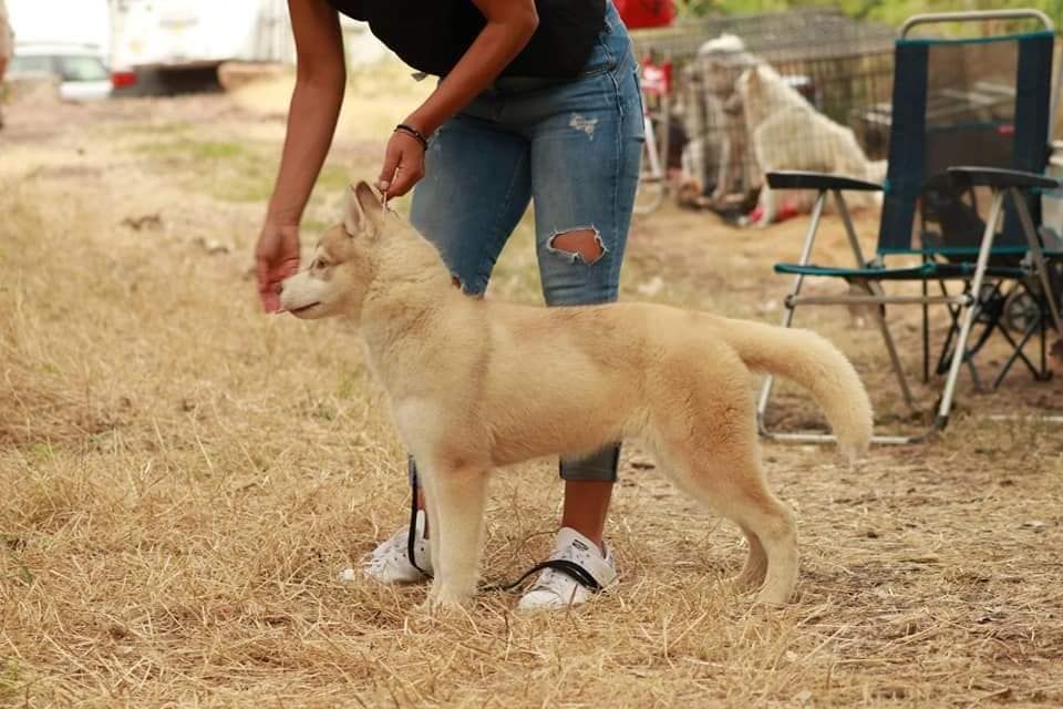 Très joli sujet excellente tête, oreilles bien portés excellent yeux, pigmentation et dentsExcellente épaule avant main et piedsExcellente encolure, poitrine Très bonne ligne de dos Excellent postérieurTrès bonne démarche