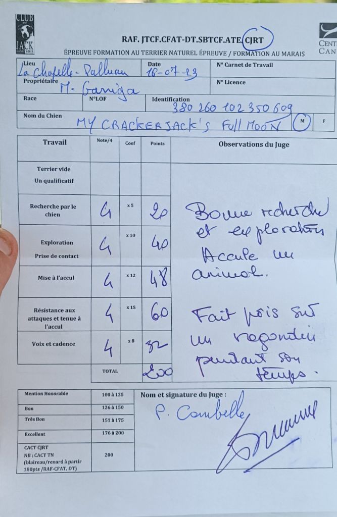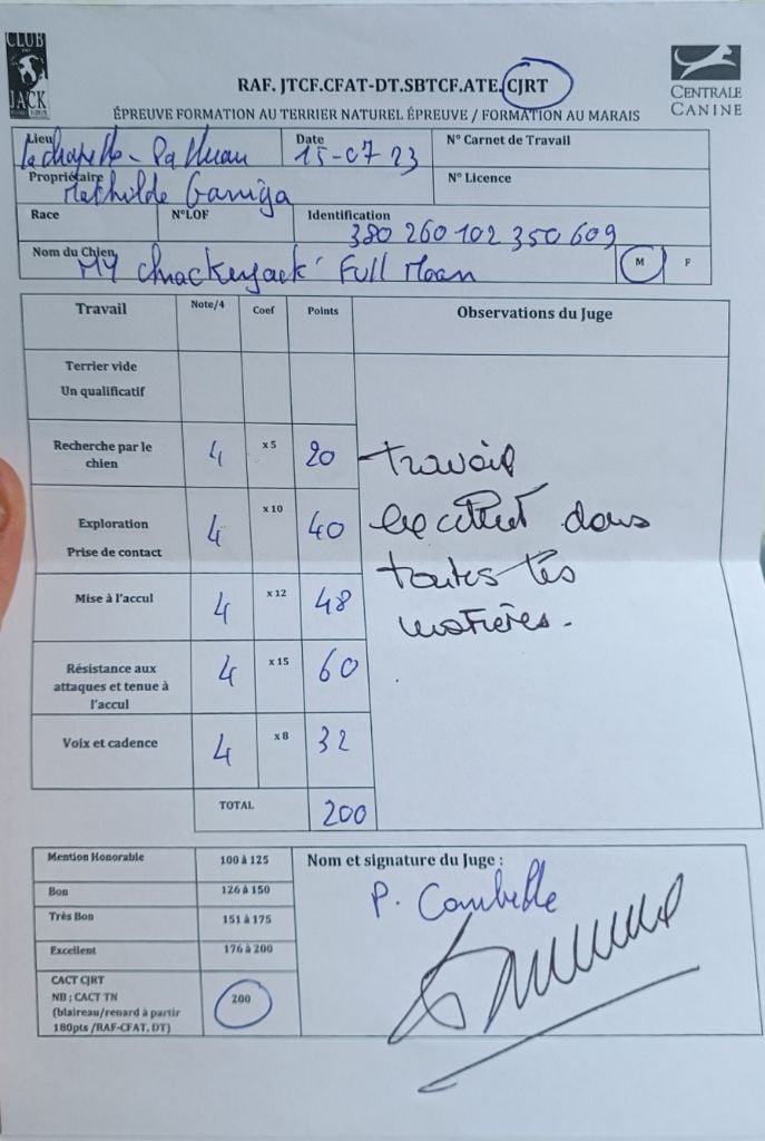 Classement non validé car conditions d'âge non remplies : Mention honorable ''chien courageux, à la limite du dangereux''