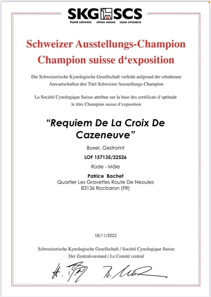Chien Boxer CH. Requiem De la Croix de Cazeneuve