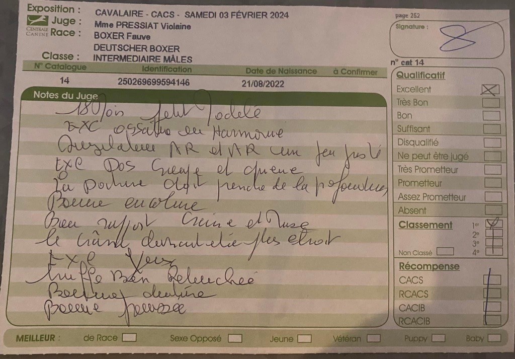 - 1er excellent JCAC Meilleur jeune Meilleur de race