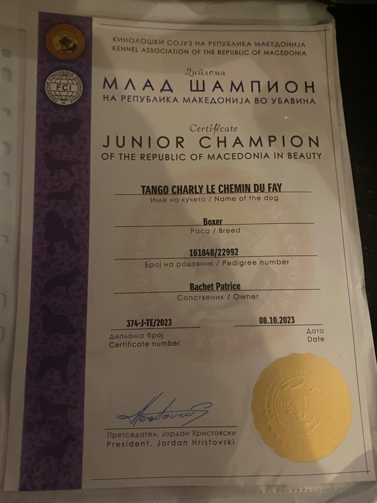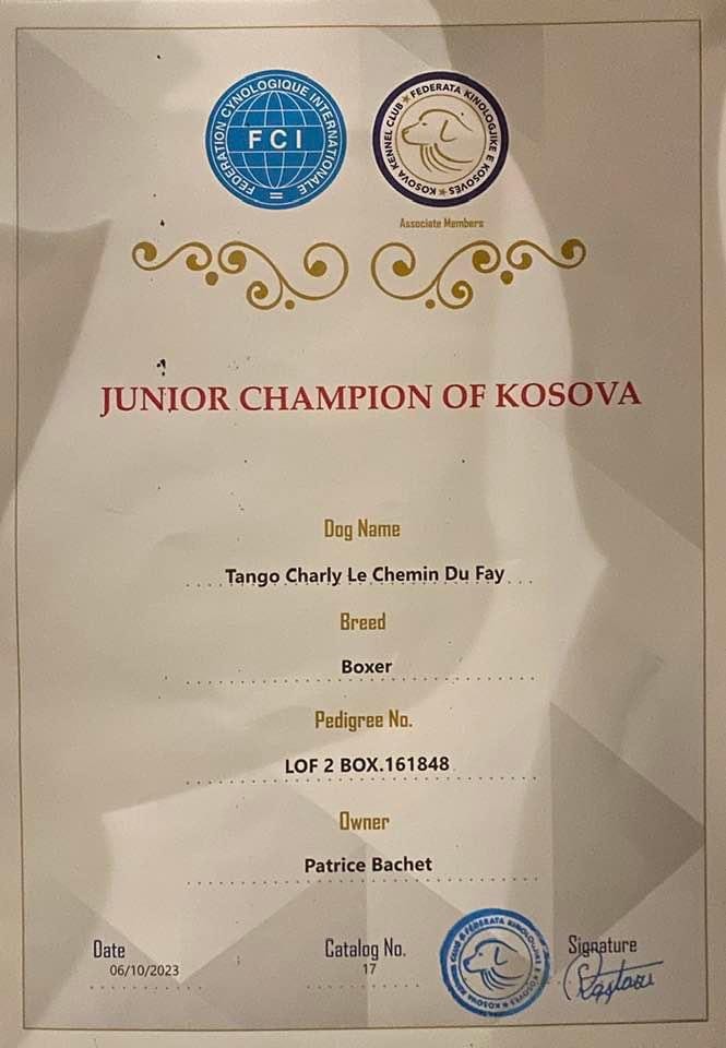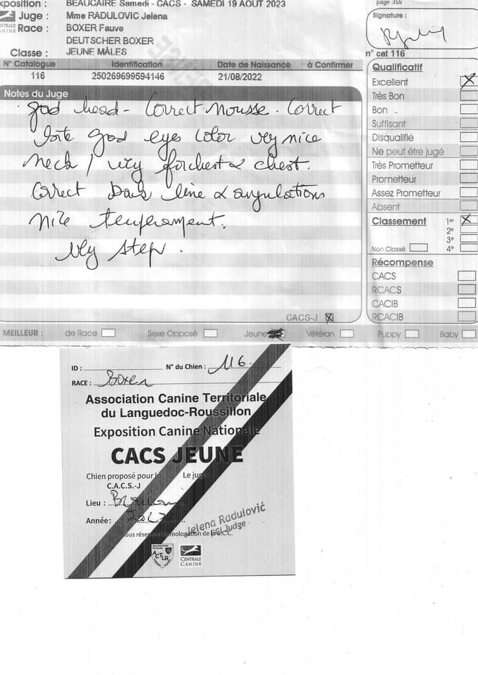 - J CAC. J CACIB Meilleur jeune Meilleur de race BOG 3