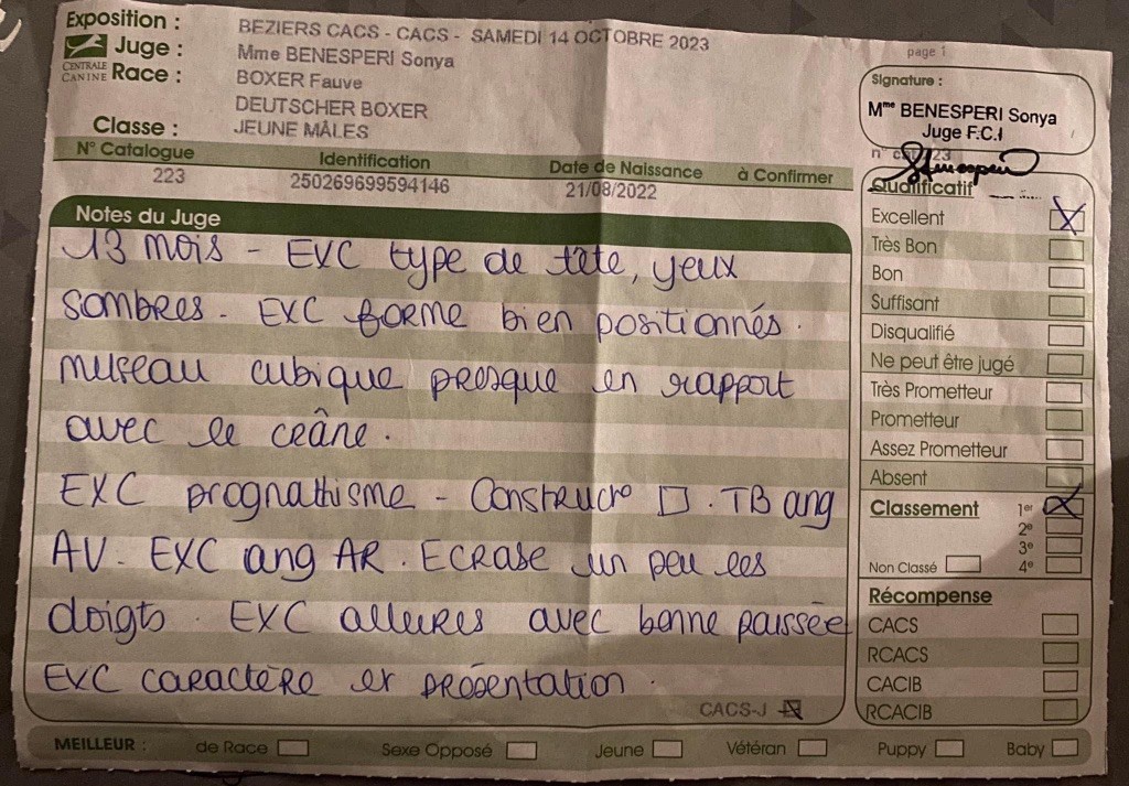 - 1er excellent J CAC Meilleur jeune Meilleur de race