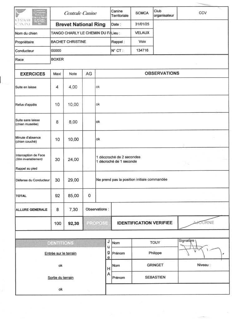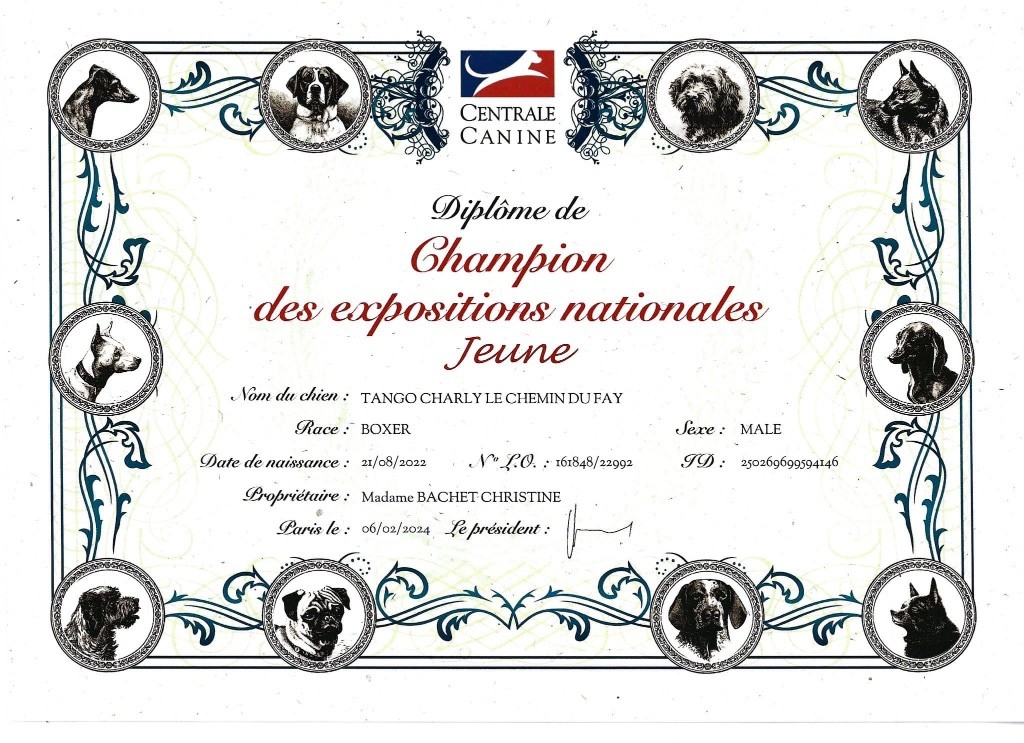 Chien Boxer CH. Bis rjbis multi jch jcnb jcib tango charly le chemin du fay