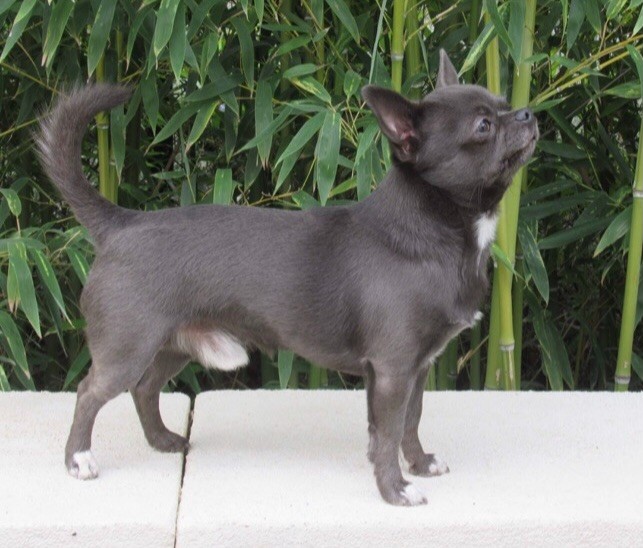 Mon beau Poseidon de couleur bleu solide juste magnifique à mes yeux. Il pese 2kg800, ce n'est pas un grand gabarit, c'est un chien qui a une ossature solide et une belle musculature.Un très joli chihuahua bien dans le standard avec un grand charisme, il est très sociable et il aime tout le monde !