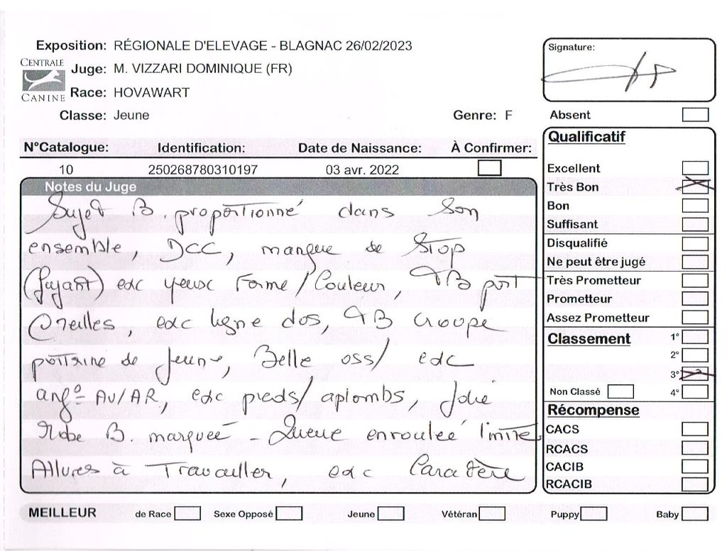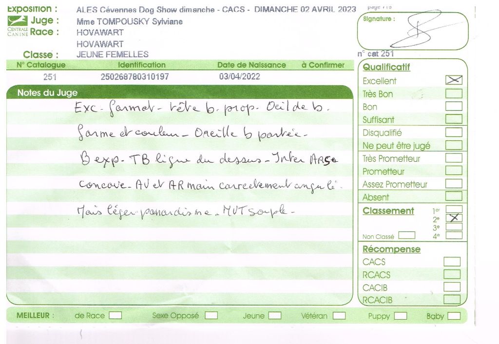 01/04/2023: Ales Cevennes Dog Show, CAC: Exc 1, Meilleur Jeune, juge Christiane Lafay