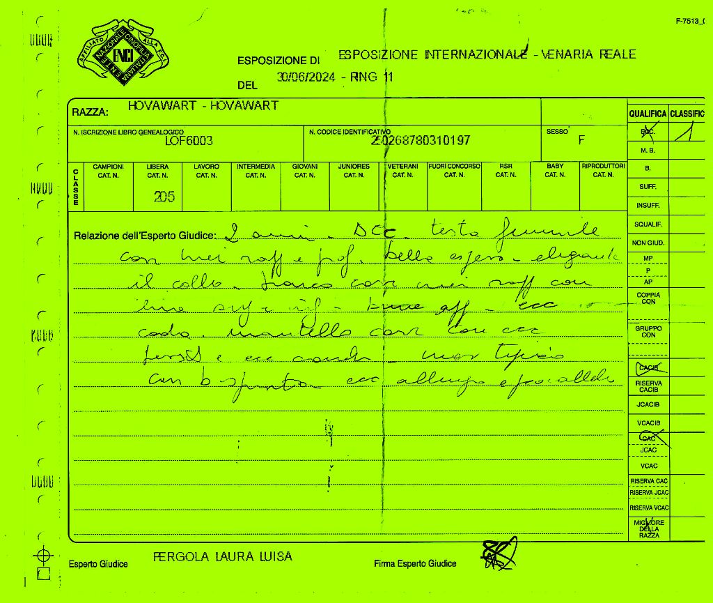30/06/2024: Esposizione Internationale di Venaria Reale - Turin: Excellent 1, CAC, CACIB, BOB , juge Laura Luisa Pergola (It)