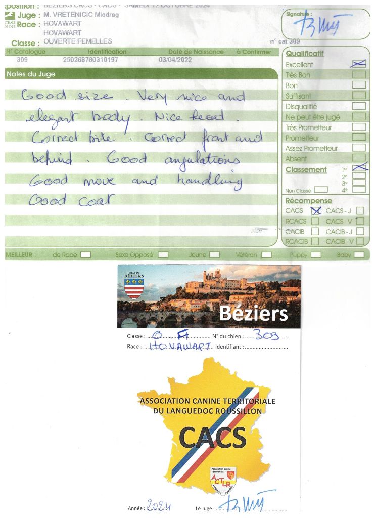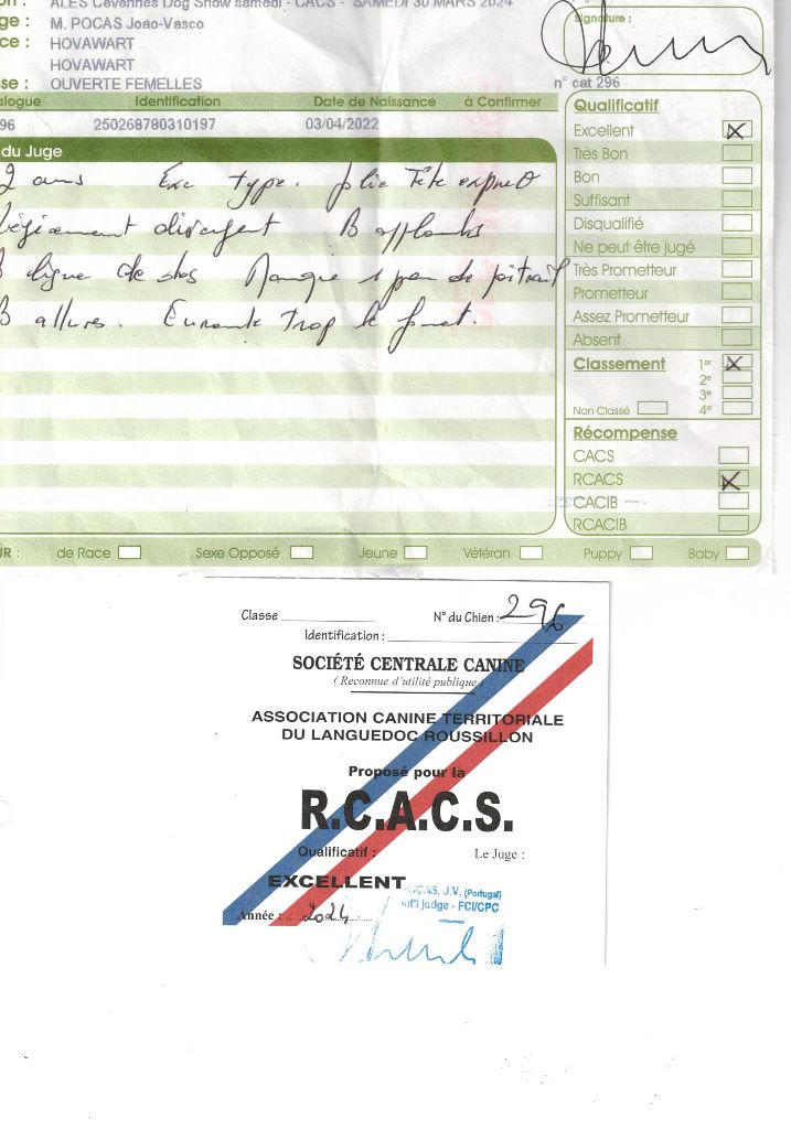 30/03/2024:Ales Dog Show, classe ouverte, Exc1, RCACS, juge J.V. Pocas (Portugal)