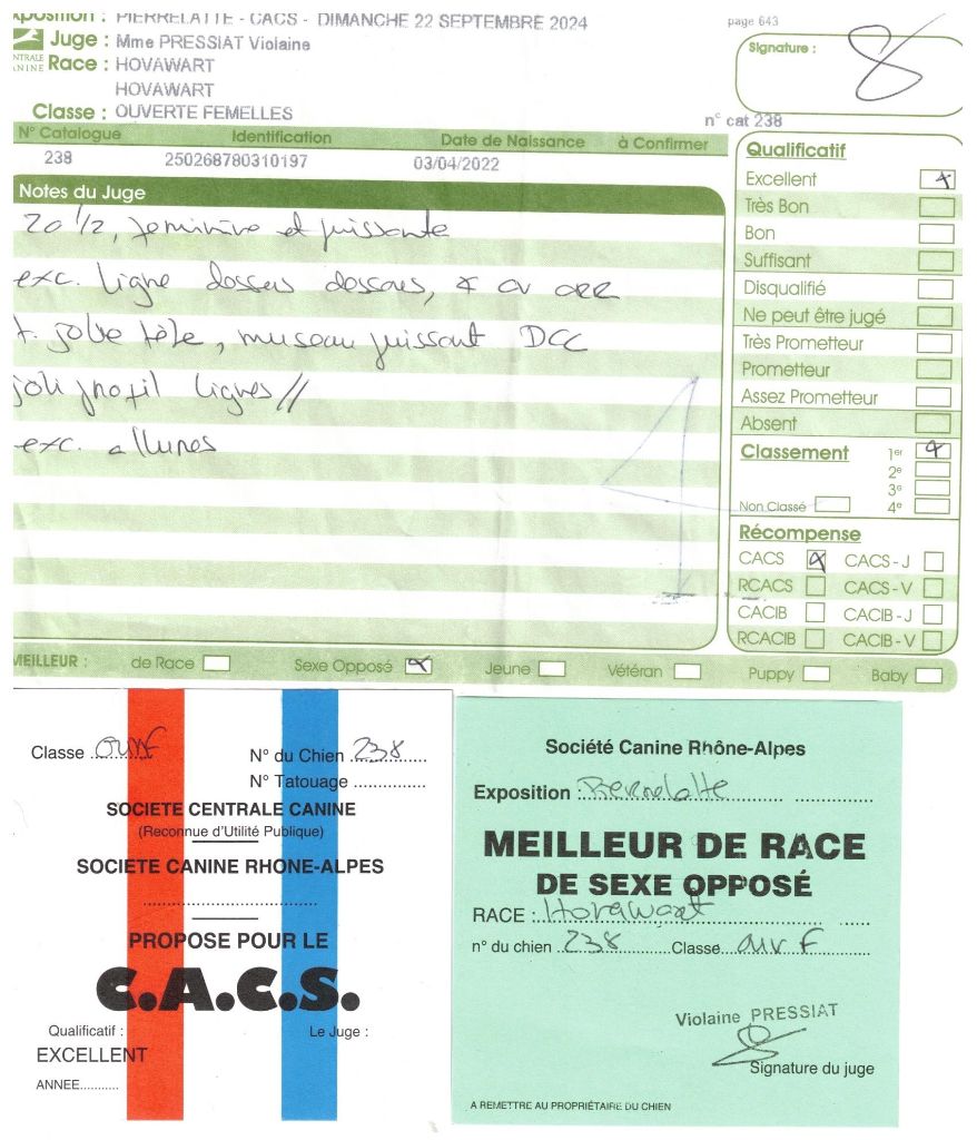 22/09/2024: exposition nationale de Pierrelatte. Excellent 1, CACS, BOS, juge Violaine Pressiat