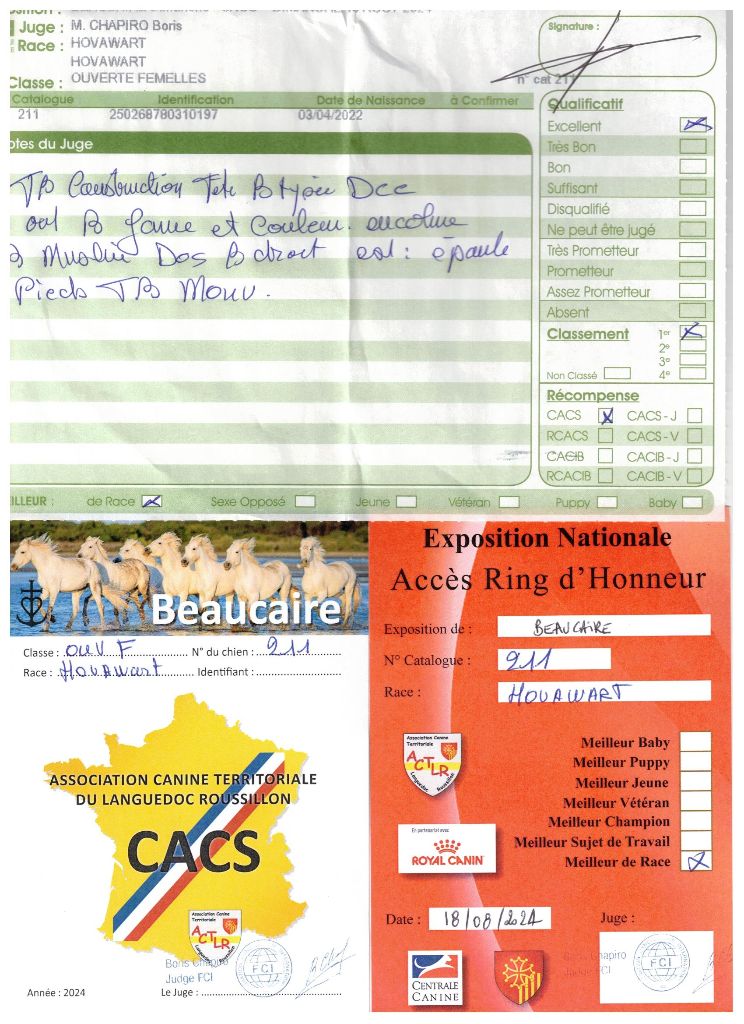 20/08/2023: Beaucaire, exposition nationale, classe intermédiaire: Exc1, RCACS, juge Christian Jouanchicot