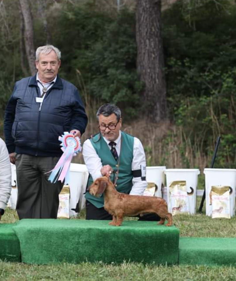 DCC - Excellente tête - Oeil bien en amande - Bonne qualité de poil - Bonne poitrine - Brechet bien marqué - Fouet ok - Bonnes angulations arrières avant - Excellente présentation et statique