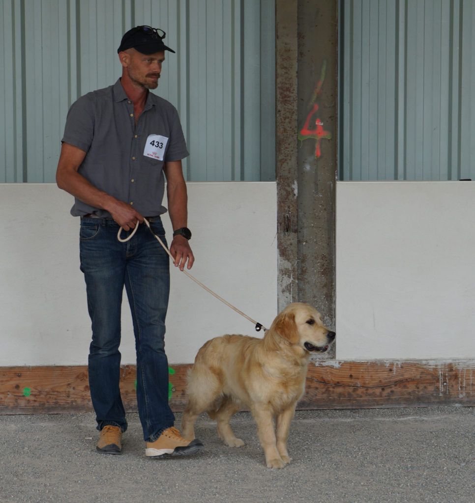 Joli modèle bien construit, la tête est bien dessinée, excellente pigmentation, l'oreille est bien implantée, la sortie d'encolure est suffisante, ligne de dessus et fouet excellents, excellente ossature, la poitrine devra descendre et s'épanouir, excellente angulation de l'épaule. Les allures sont correctes mais doit se souder. Bon poil et sous-poil.