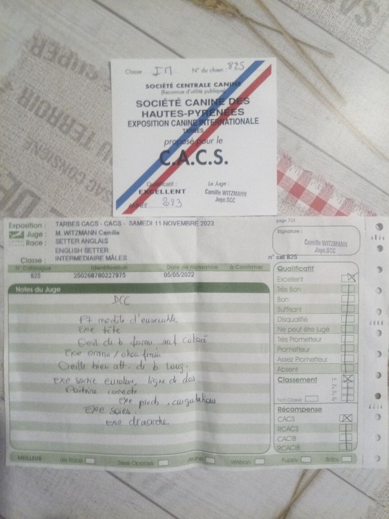 Le 11/11/2023 à 18 mois. Il obtient expo un 1er excellent avec CAC.