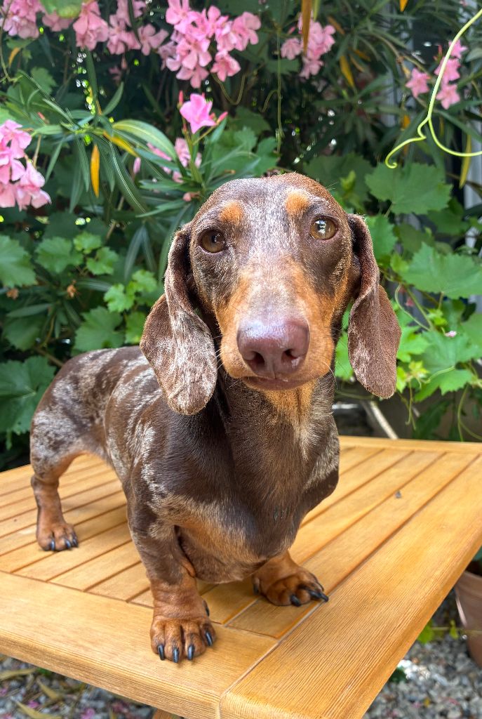Chien Teckel poil ras Theodora des Jardins De Courtille