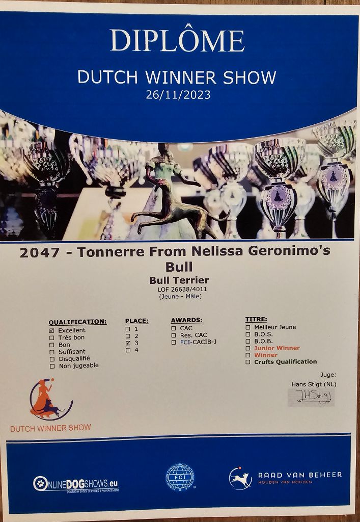 Chien Bull Terrier CH. Tonnerre from nelissa De Geronimo's Bull