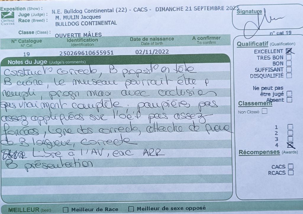 - 1er excellent CACS + meilleur de race Spéciale de Race Limoges Avril 2025