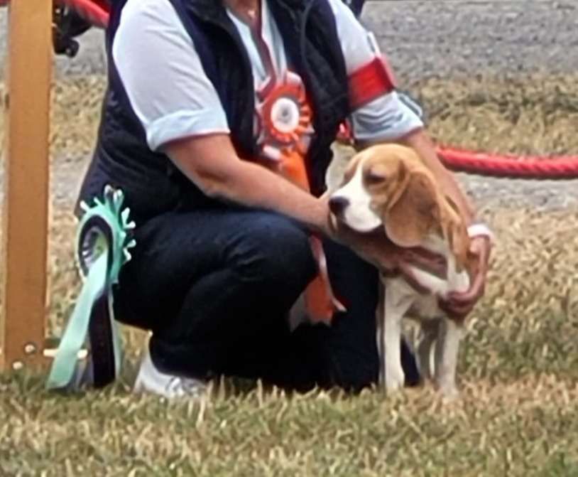 DCC- Bien construit, dans le type, compact, excellent dos. Belle tête et expression . Belles angulations avant arrière . Excellente pigmentation - Se déplace bien