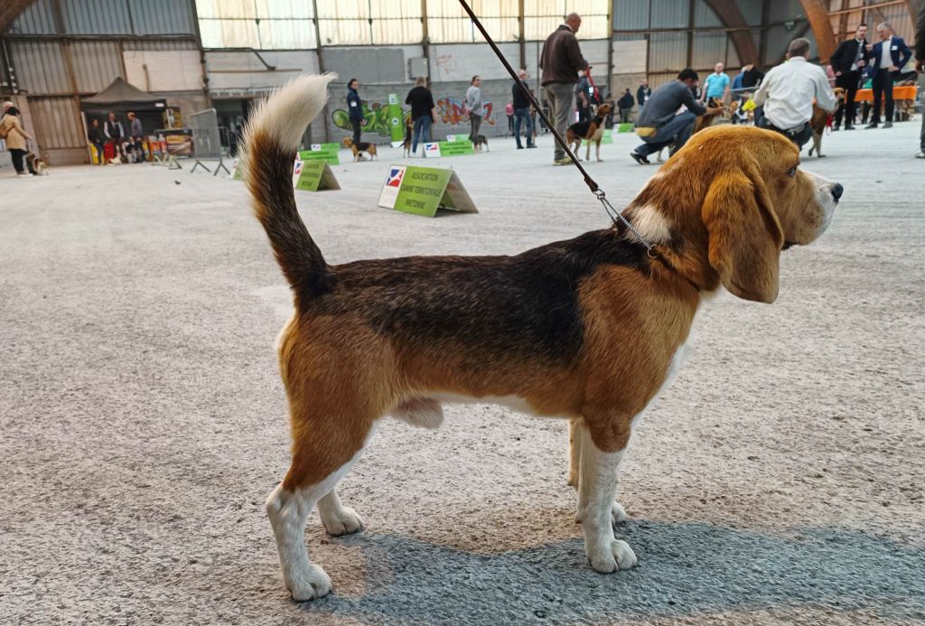 Excellente Tête et oreilles - Excellent poil et pigmentation - Sujet bien proportionné - Postérieur serre un peu a la marche - Présentation élegante