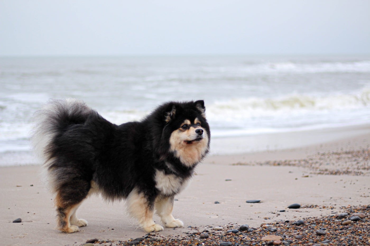 Chien Chien finnois de Laponie Tellement joyeuse Du Bonheur Arc-en-ciel