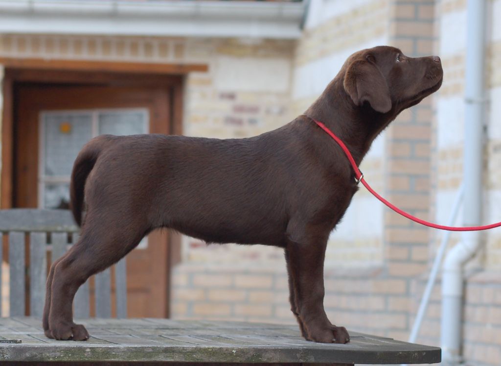 Feminin puppy with nice proportions Could have been a little bit more balanced Correct size and bone substance Correct head and correct expression Correct neck and angulation in front Could have a better rear angulation and better tailset Is a little overbuilt in rear when moving Moving quite well Very nice temperament and a coat which is not at his best today