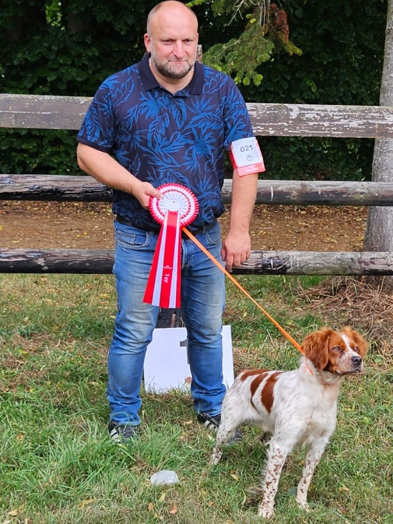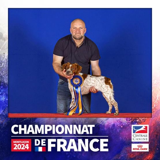 Texas a eu son tan à 10 mois. Texas est issu du mariage "Jet du grand capricorne élite A" et de " Mylas du mont Chanois cot 4 " HDA ,Texas a déjà plusieurs classement en Field trial dont plusieurs CACTs en gibier tiré et gibier naturel ( et plusieurs classement a l'excellent) Il a obtenu un CACS et RCACS au Paris Dog Show 2024 en classe travail Classé au Cacs en national d'élevage Trialer , Texas obtient en 2024 a seulement 2ans 1/2 les titres de champion de France CS et Champion de gibier tiré ( 5 cact(s) en gibier tiré) Cotation 4 ( étalon recommandé par le club de l'épagneul breton et la centrale canine) Porteur du gêne tricolore Propriétaire: Mr Handschutter Franck 06.76.93.27.14 élevage du bois des Croules
