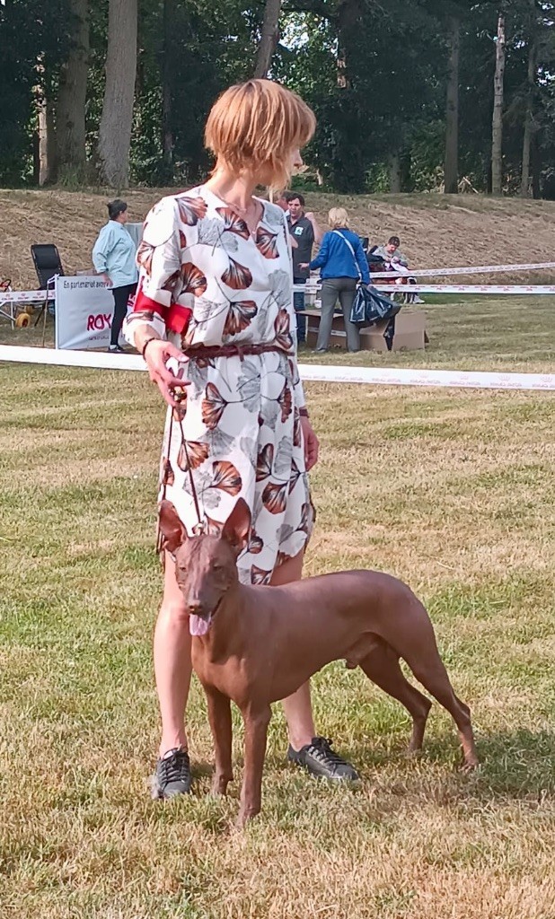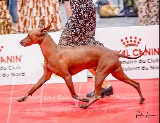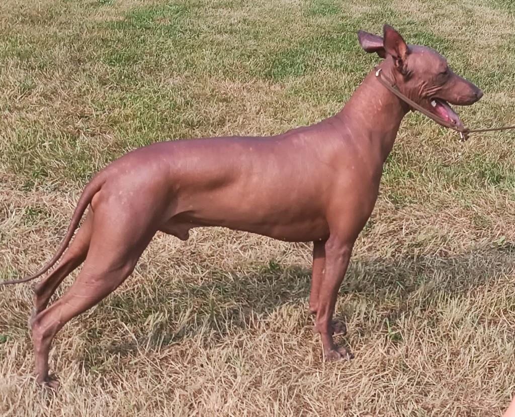 Entièrement nu, 11 BOB à ses 24 mois, 1 BIS (à 10 mois) à suivre :). Excellente allure relevée par tous les juges, également excellente ligne de dos et du ventre, belle queue en prolongement de la ligne du dos, belles oreilles, bon caractère etc. Il est déjà papa de 10 magnifiques bébés (8 nus et 2 poilus). Nous serons ravis de vous rencontrer!