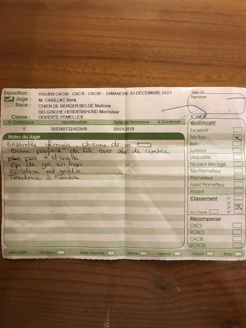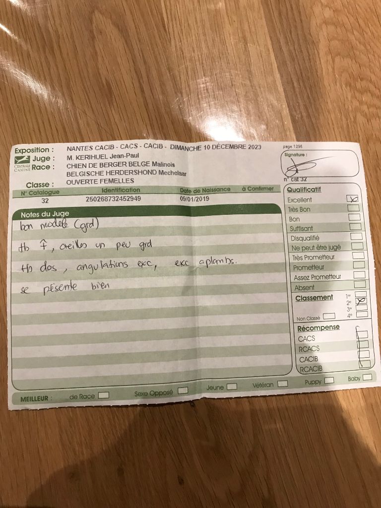 -Dysplasie - -HD-B. ED-0-Myelopathie dégénérative type A (DM1A-1.1) - -INDEMNE-Test du comportement - -Indemne AO/AO-Dégénérescence spongieuse ataxie cérébelleuse type 1 et type 2 - -INDEMNE-DNA - -ADN