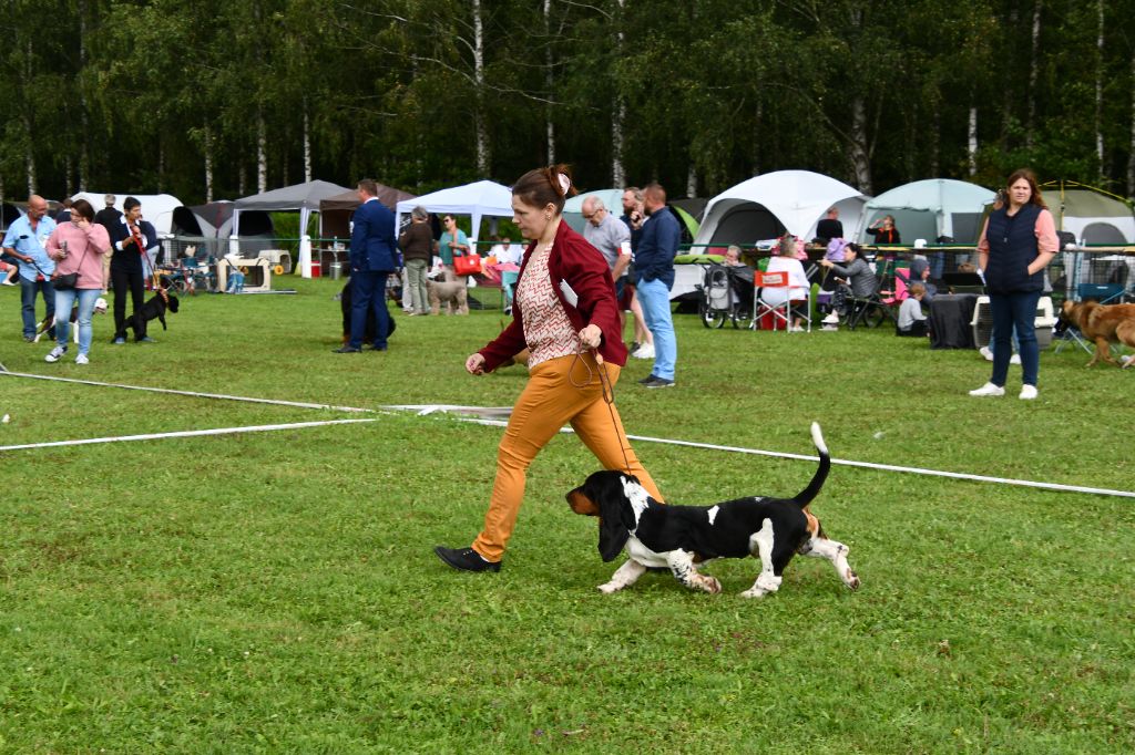 jolie tête belles proportions oreilles bien attachées + belle texture sternum bien développébonne angulation postérieur la ligne de dos pourrait être plus soutenue lors du mouvement