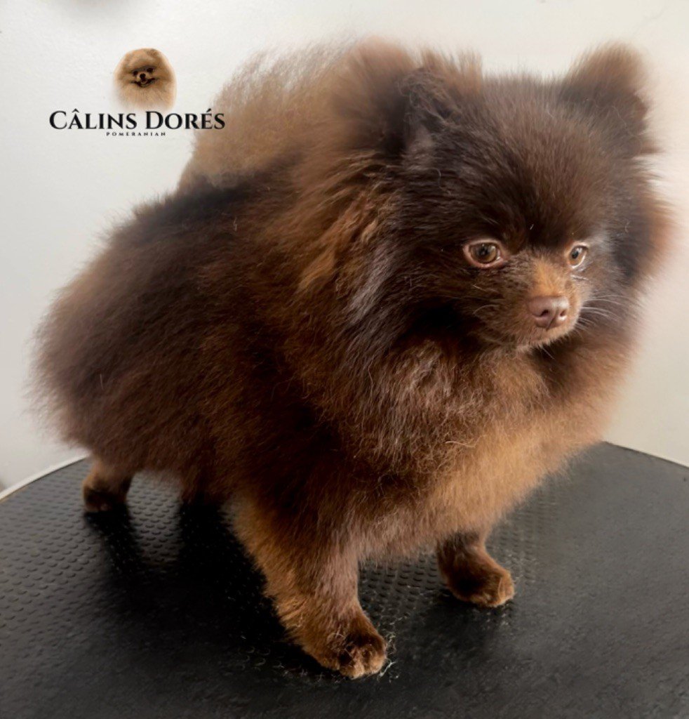 Chien Spitz allemand CH. yorkamania Magnifique chocolat kitkat