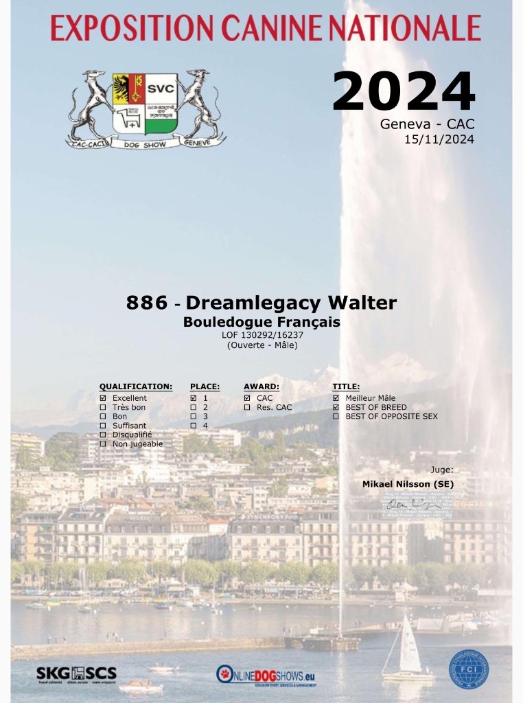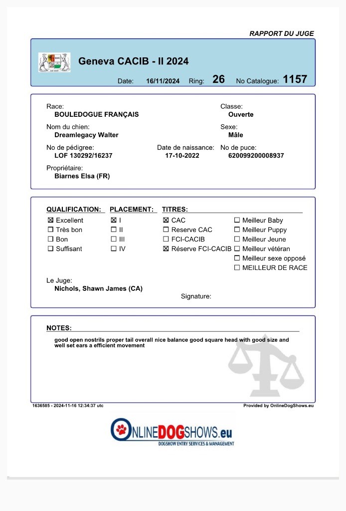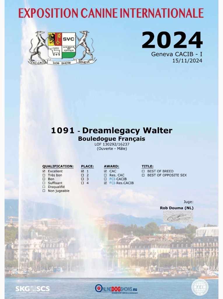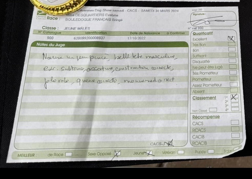 - 1er excellent + CACS + CACIB+ Meilleur de race + 2nd meilleure race française