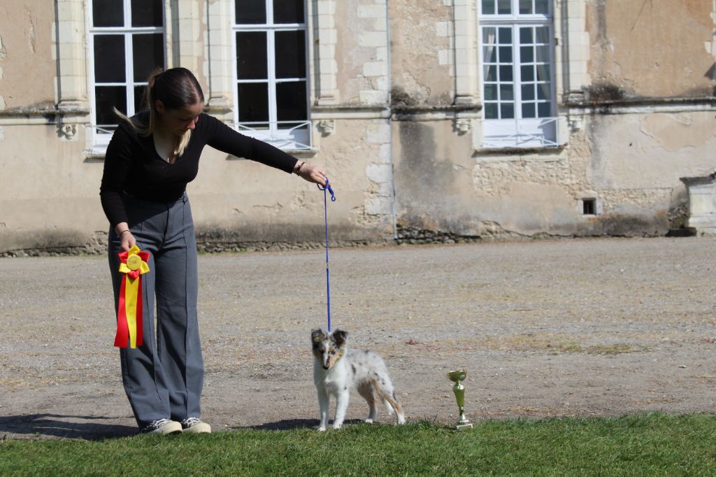 jeune male qui se déplace avec aisance - tête élégante - oreille bien portée - bon rapport crane champfrain - dentition en ciseaux - bonne longueur de fouet - ossature parait forte - sujet bien typé