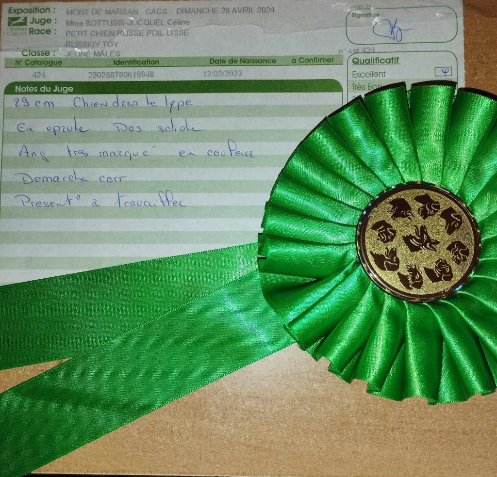 29cm chien dans le le type ex épaule dos solide angulation très marqué ex couleur démarche !correcte représentation a travailler !