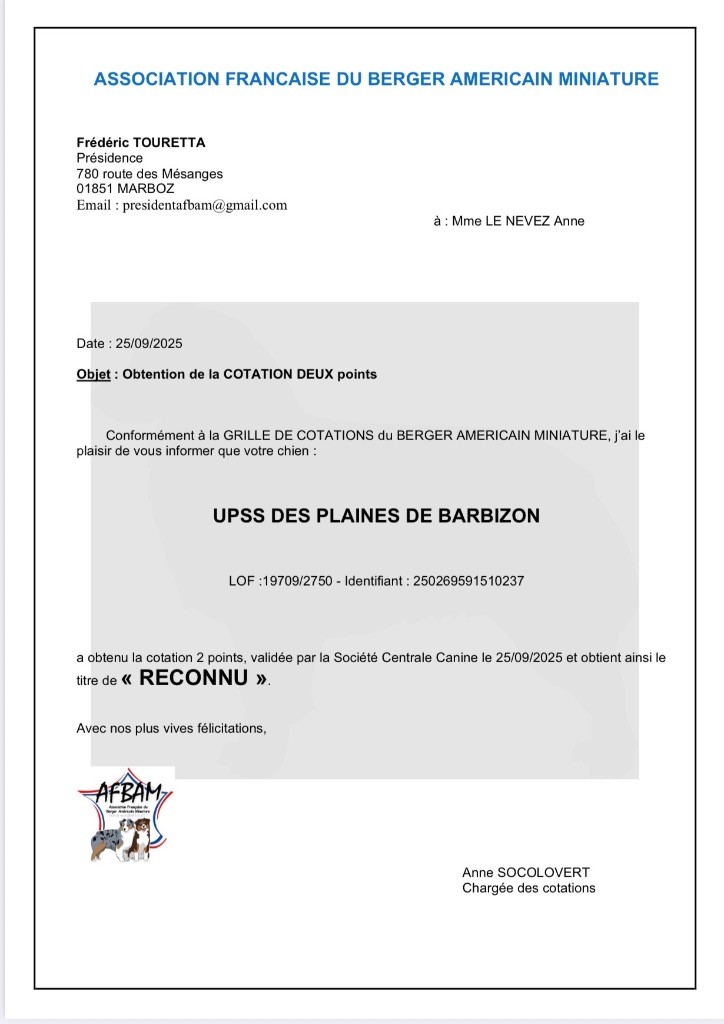 Chien Berger Américain Miniature Upss Des Plaines De Barbizon