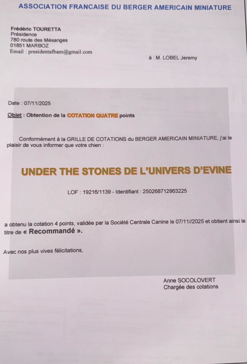Manifestion : International - Juge : Anne SOCOLOVERT