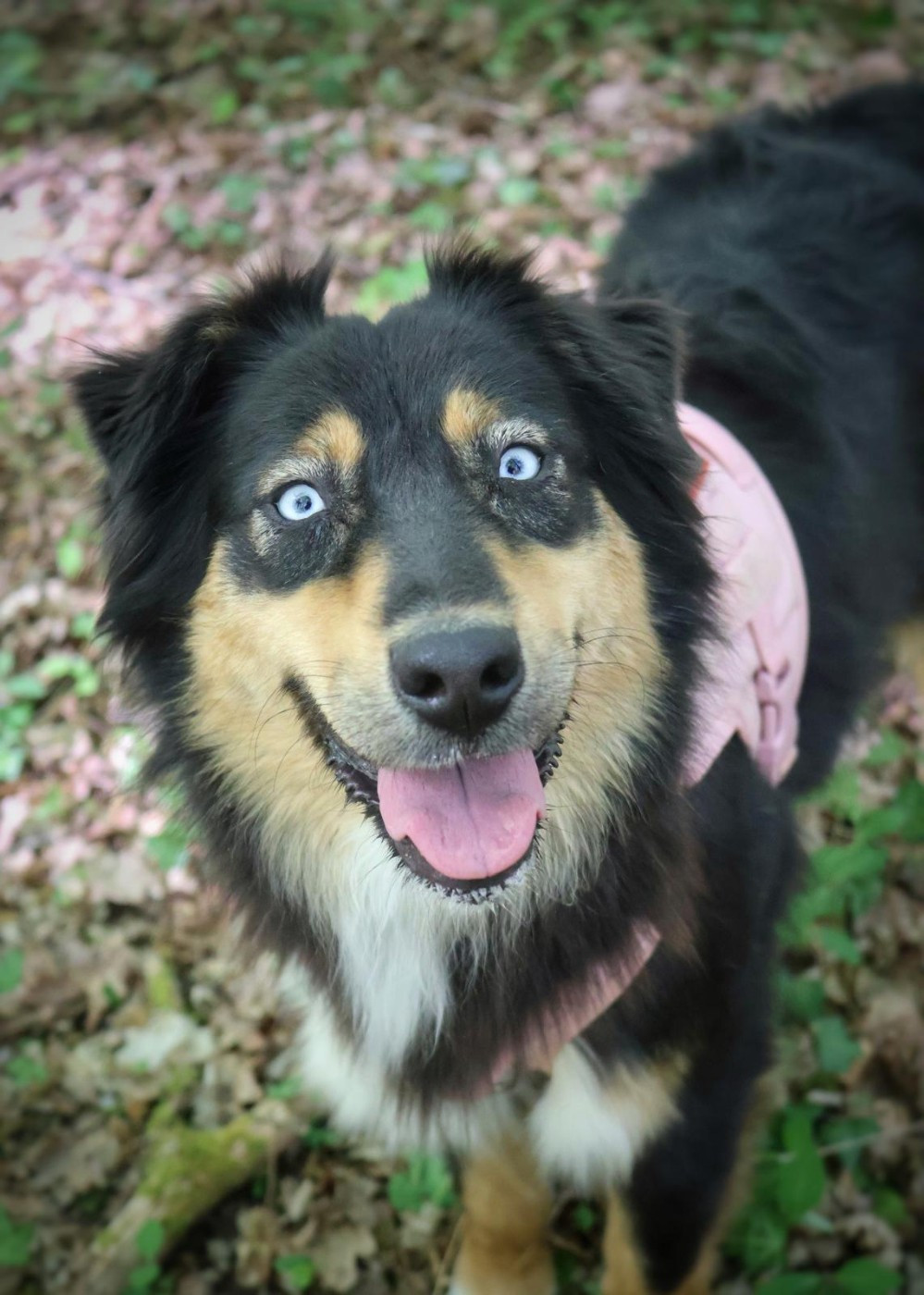 Génétique : porteur du gène "yeux bleus chez les tricolores" (rare) depuis au moins 12 générations (affichées à l'élevage) et également issue d'une lignée dont les marquages sont intensifiés (minimal white).