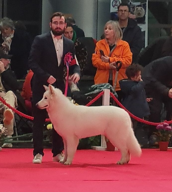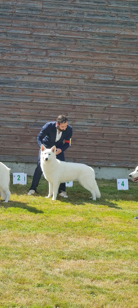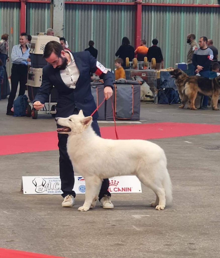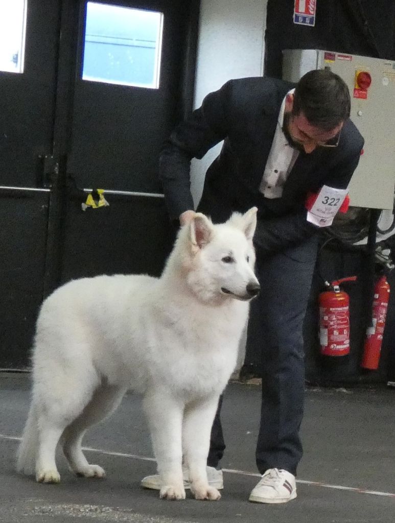 Magnifique blanc, Bien typé, DCCTete: Joli va prendre encore du volume, Excellent crâne, Excellent stop, Ligne parallèle respectée, Bouche sèche, Oeil bien ouvert sombre et de bonne forme, Oreille un peu petite.Corps: Excellent proportion 12/10ème, Excellente encolure et dos, Belle croupe, Flancs déliés, Poitrail doit prendre en volume, Excellente poitrine, Excellente ossature et pied,Mouvement: Bon mouvement et on sent un potentiel fluide