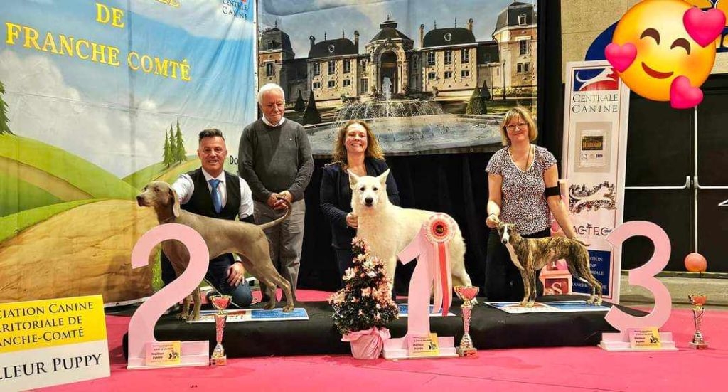 A 12 mois " UNICA " remporte son premier MEILLEUR DE LA RACE devant l'élite des Champions de France de beauté !!Le juge lui promet un avenir à l'image de son père ...En attendant on va continuer à travailler et profiter de la vie avec la belle ...