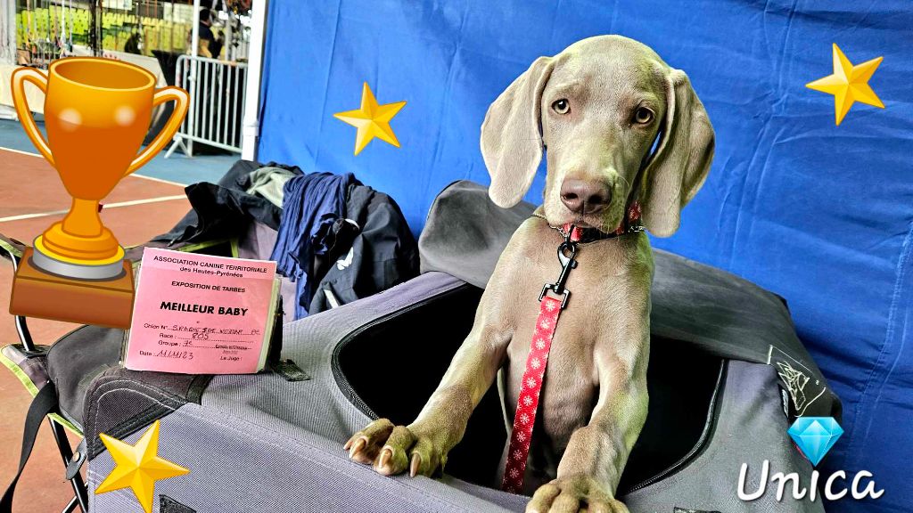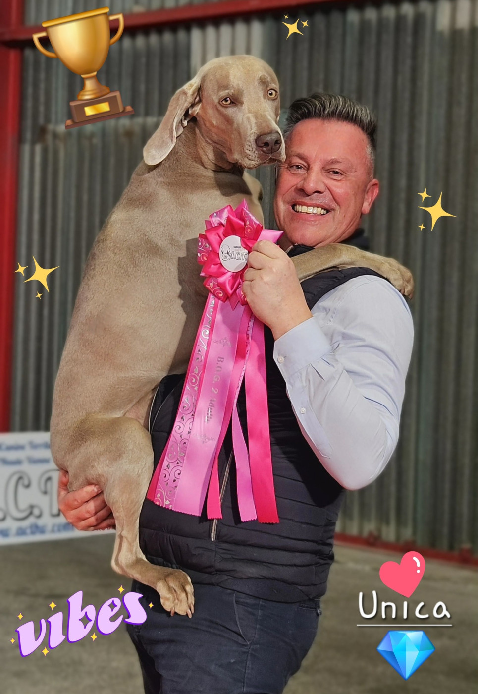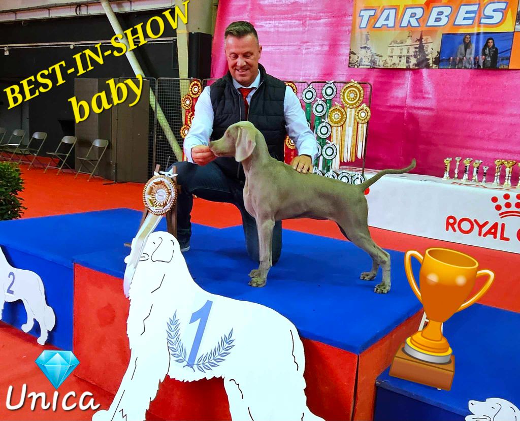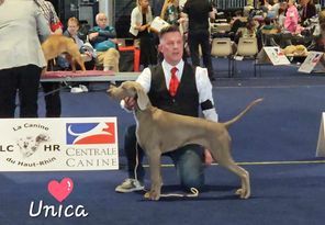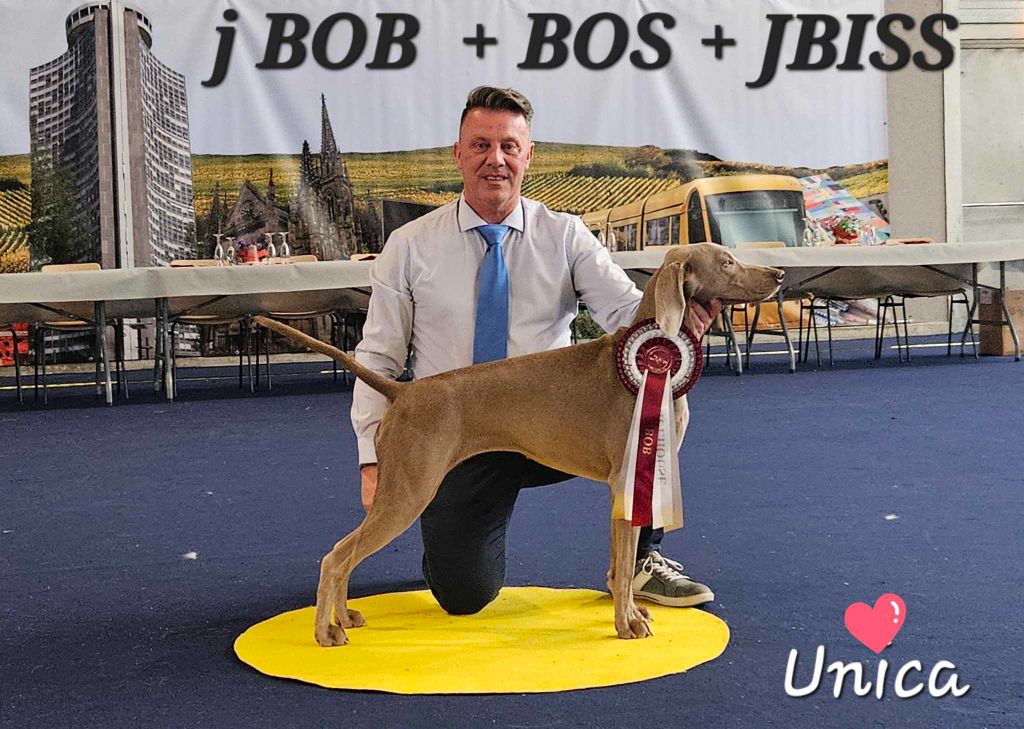 " UNICA " à 9 mois remporte le BOS ; la BEST Femelle dans une spéciale de Weimar , c'est tellement rare en jeune sauf son illustre père qui l'avait réalisé à 2 reprises !