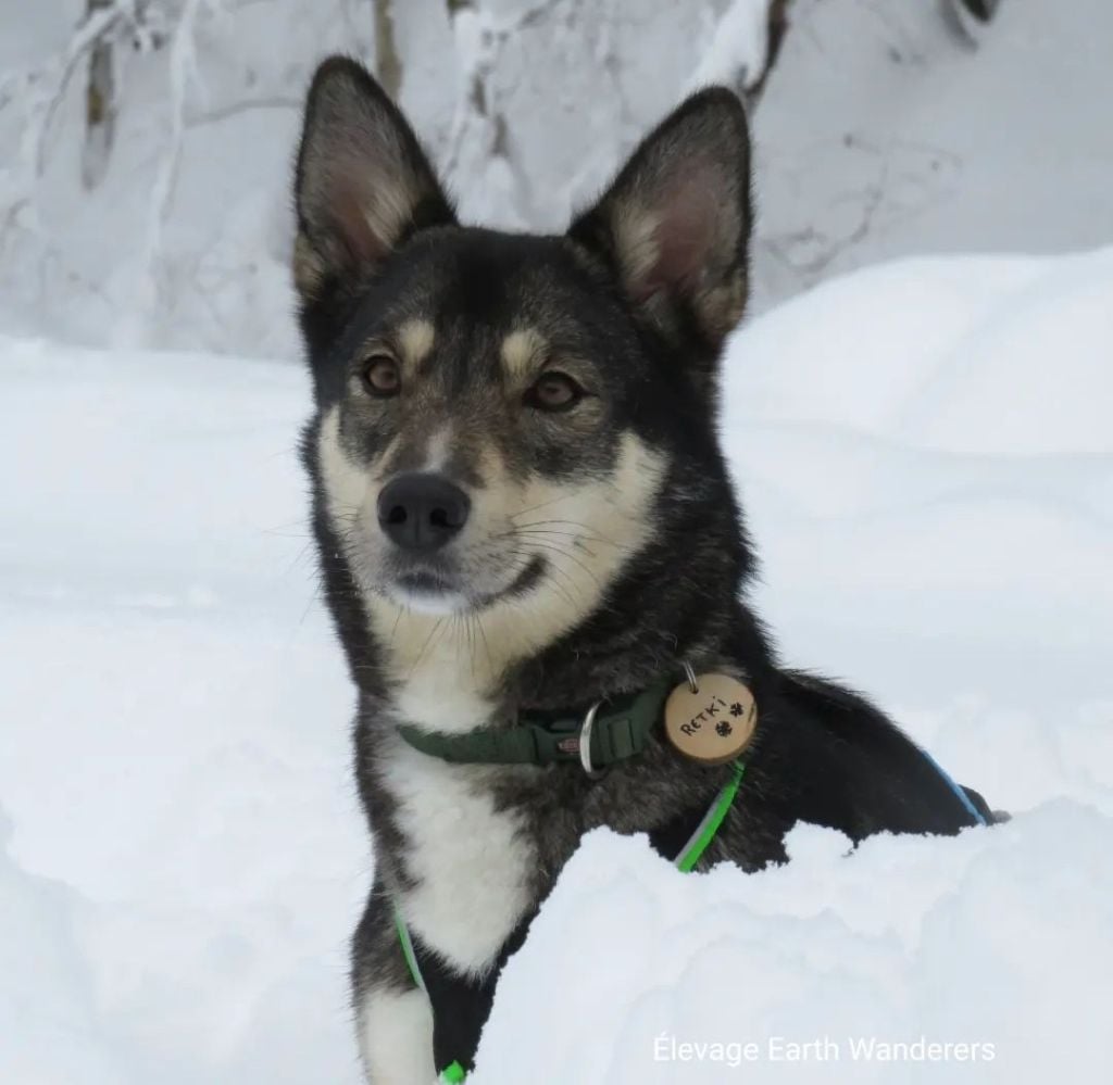 Retki est une chienne formidable. Elle est câline et pot de colle. Elle n'a jamais fait de bêtises de sa vie, elle est calme mais toujours prête à faire quelque chose. Elle adore jouer et manger ! Elle a des capacités bluffantes en agility/dogparkour et travail du flair (nosework, pistage,...). Elle travail un peu sur troupeau de chèvres et pratique le canivtt, canicross et cani randonné. Elle vit avec mes poules, lapins, chevaux,... par contre Retki est méfiante envers les enfants et personnes âgées et adore creuser des trous.