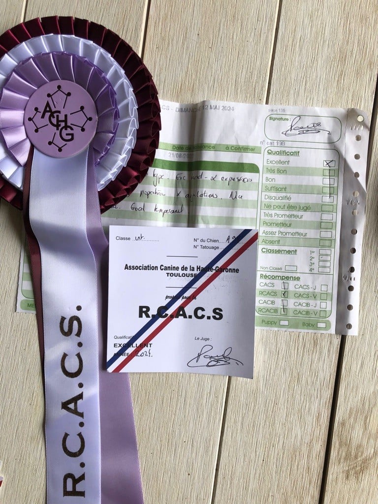 SCA - LOA : clear (homozygote normale) indemne et non porteuse LOcA: - ay/at (porteuse de tricolore)PLL-A - LOA : clear (homozygote normale) indemne et non porteuse luxation rotule : - indemne 0/0 (dernier contrôle 27/02/25)LOA - LOA : clear (homozygote normale) indemne et non porteuse DM - LOA : clear (homozygote normale) indemne et non porteuse Dentition: - complète et conforme (DCC)