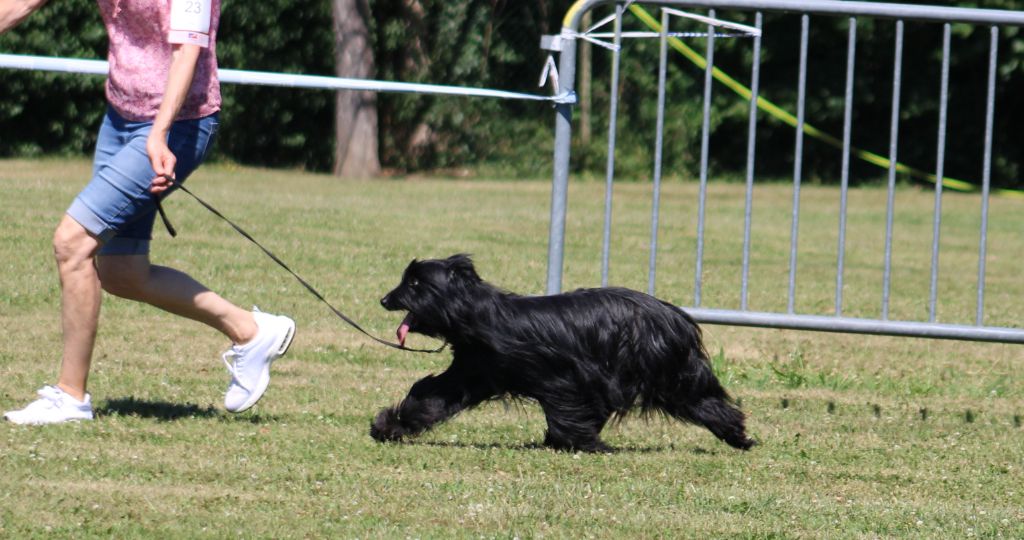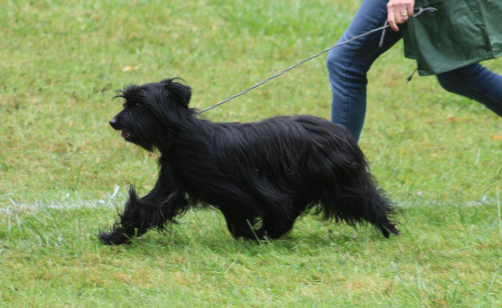 Très jolie petite chienne Exc proportion belle arrière main Exc robe et fourrure jolie tête expressive aimerait un peu plus largese présente un peu inquiète belles allures bien régulières exc port de fouet