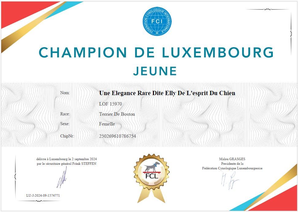 - CACIB.J - MEILLEUR JEUNE - CHAMPION JEUNE DE LUXEMBOURG