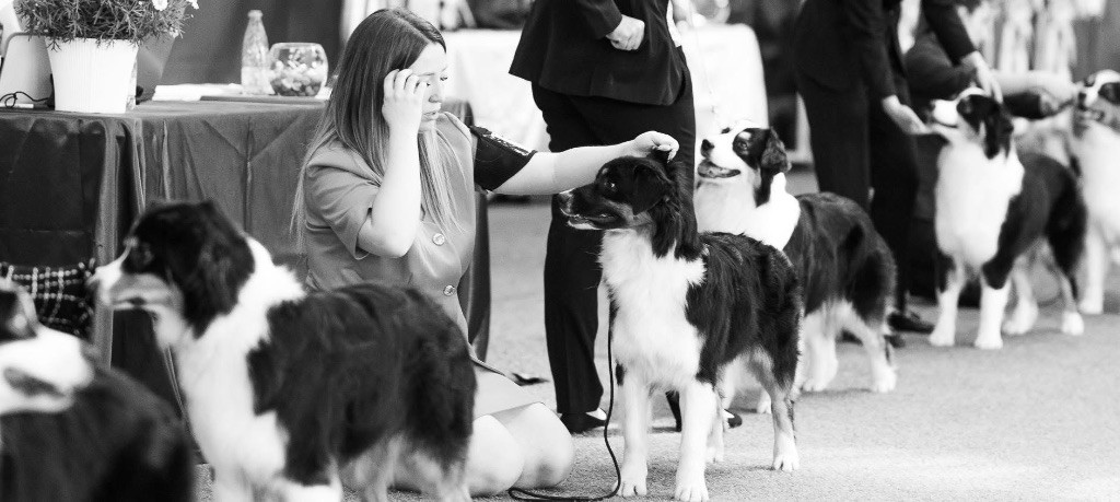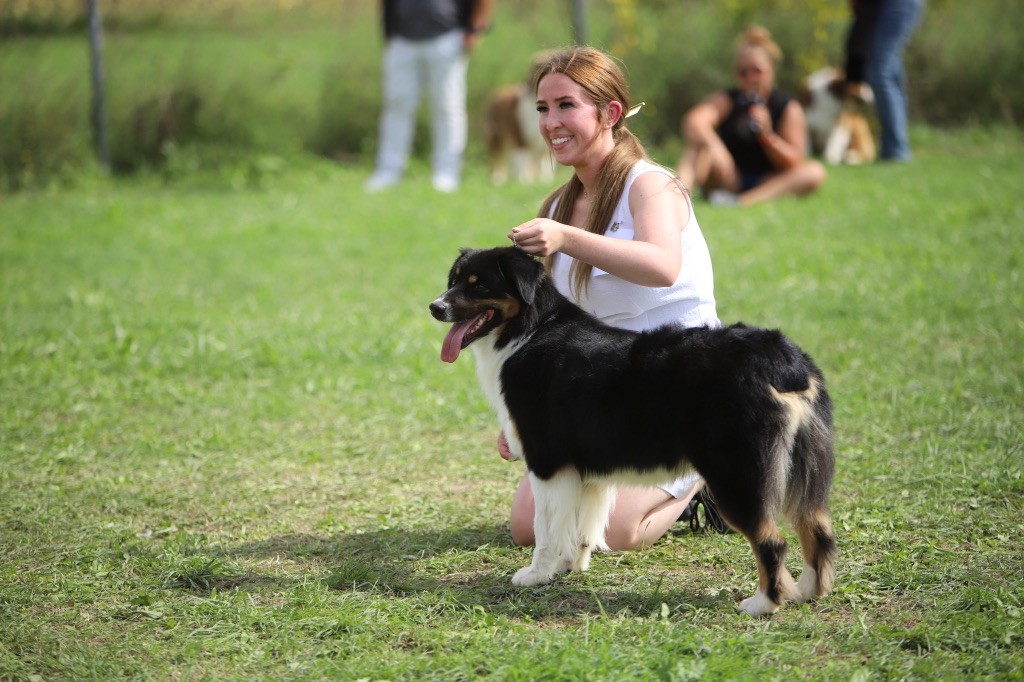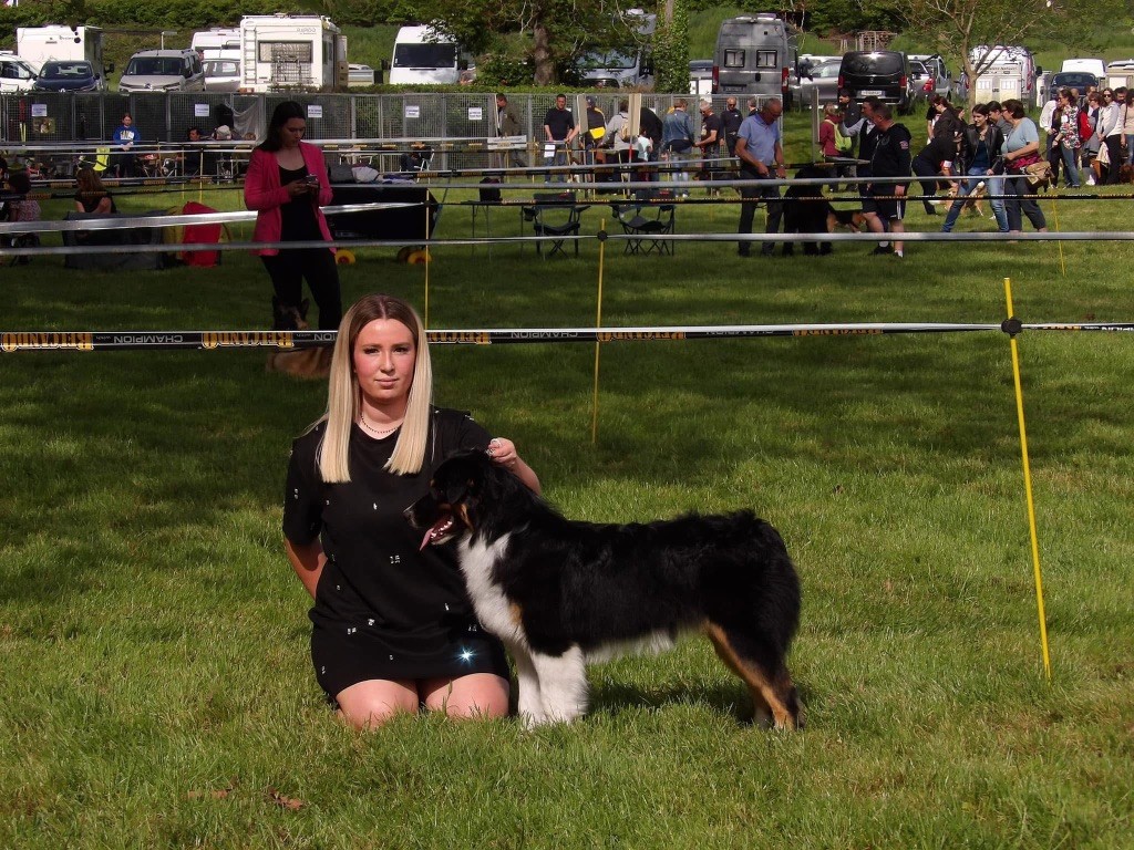 Jolie chienne noir tri. Allures latérales très bien. Aller un peut étroit. Retour correct. La tête un peu trop fort pour une femelle. Les yeux sont corrects. Les oreilles sont un peu trop longues. Les dents corrects. La robe, la couleur et pigmentation excellent. Comportement Calme.