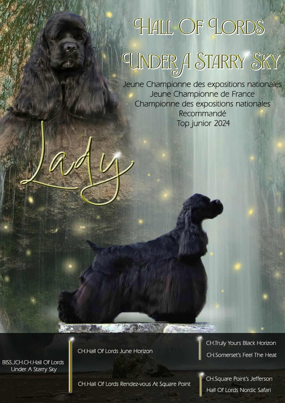 Chien American Cocker Spaniel CH. Hall Of Lords Under a starry sky