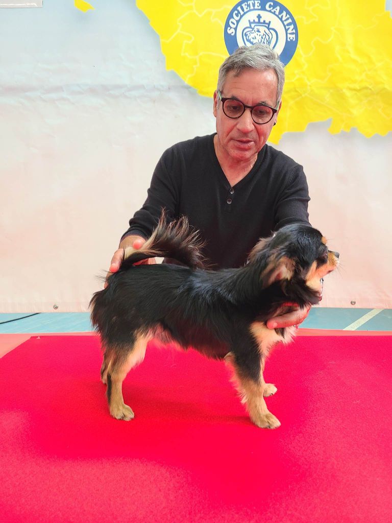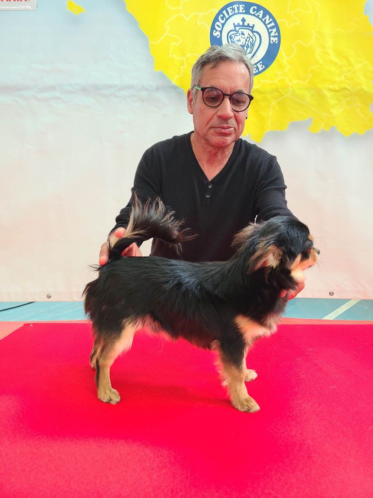 tb tête as bien en pomme stop suffisant marqué dentition correct oreilles bien insérées et bien portées b forme d'yeux et couleur queue bien implanté b longueur ossature solide exc cémarche queue bien porté